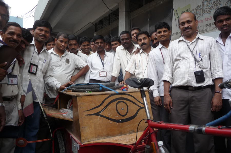 d'une quarantaine d'Indiens très curieux devant l'engin. Il est